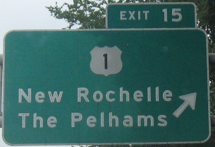 All NB on the New England Thruway. Yes, the Exit 15 advance BGS is identical to the exit BGS, so no it's not a doubled photo. The last picture is the Thruway's NB tollbooth, showcasing a huge I-95 shield (far larger than any other Interstate shield I've ever seen). It used to be bidirectional, but the SB side was given a break to expand volume and prevent excessive delays at the tolls. This is the only toll heading away from NYC, all others are toward. Click on it for a closeup of the big shield.