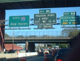 An old EB Bruckner/NB I-95 gantry. The PELHAM PKWY WEST sign is about as old as BGS's get in NY (all caps), so click for a closeup.