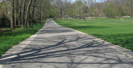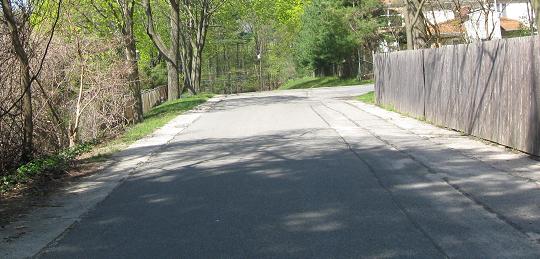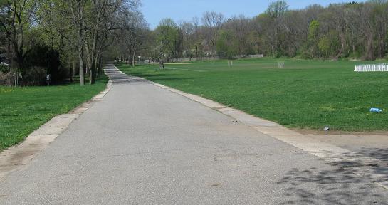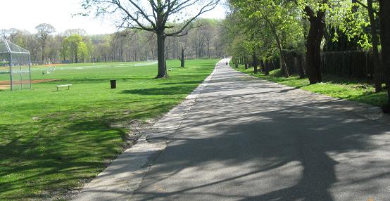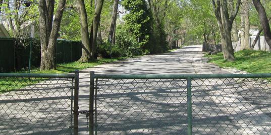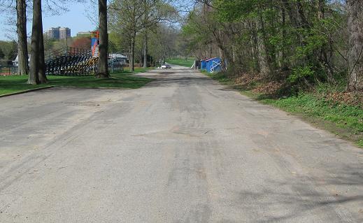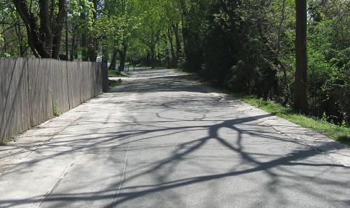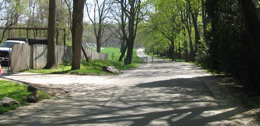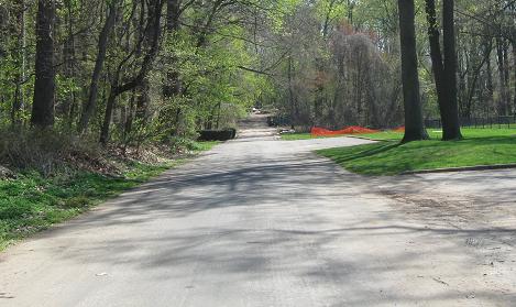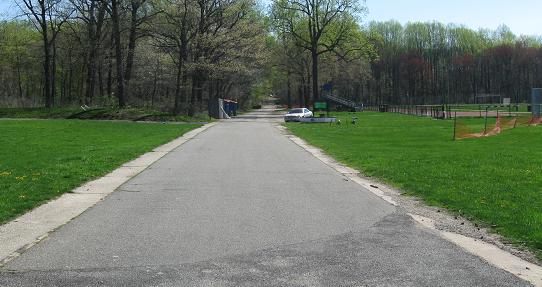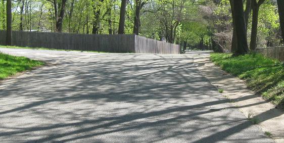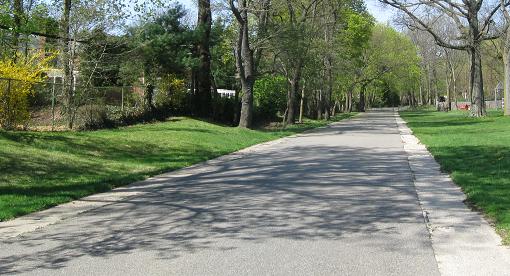 After following the 74th Ave. right of way on the east side of Queens, the Parkway crosses Northern State Parkway, visible as the curved rear of a synagogue parking lot, and then crosses Lakeville Rd. One of the best-preserved Parkway sections starts right there and runs to the edge of the Northern - then picks up again in Manhasset Hills for another very long and decently preserved stretch. To visit the Lake Success roadway, head north on Lakeville Rd. from Northern State Parkway Exit 25, make the first right on Tanners Rd., then head all the way back to the dead end. Park with discretion, and walk the opposite direction as the gravel path. You'll come out smack in the middle of the old alignment.
