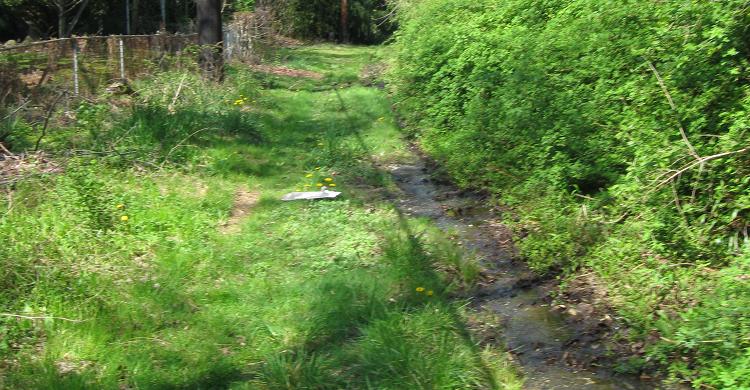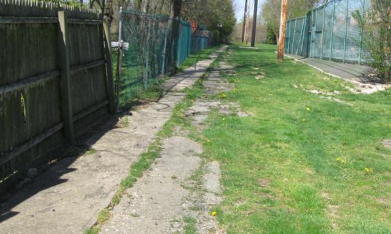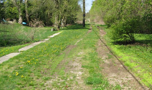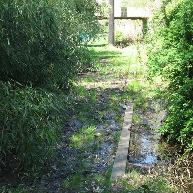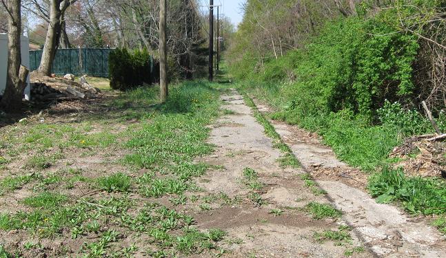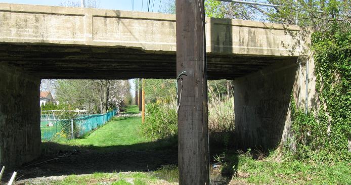 Over hill and dale, through swamp and flood, my Parkway tour makes its appointed rounds and comes at last to the Old Court House Rd. overpass. Notice that through the worst of the muck, there are wooden beams laid out to walk over. Considering this right of way is nominally off limits according to the one sign on New Hyde Park Rd., the wooden beam would seem unnecessary....