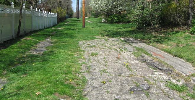 The roadway grade no longer leads up on top of the abutment that marked the east side of the New Hyde Park Rd. overpass, so you can see how it was built up with stone. Again, this is something you won't see anywhere else on the Parkway anymore.