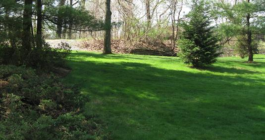 Although there's no trace of the Parkway to the west, it ran partly on the Northern State Pkwy. EB Exit 26A ramp (seen here) and partly just to the north in the grassy area, presumably up to the tree line on either side (being somewhat wider than the single-lane ramp).