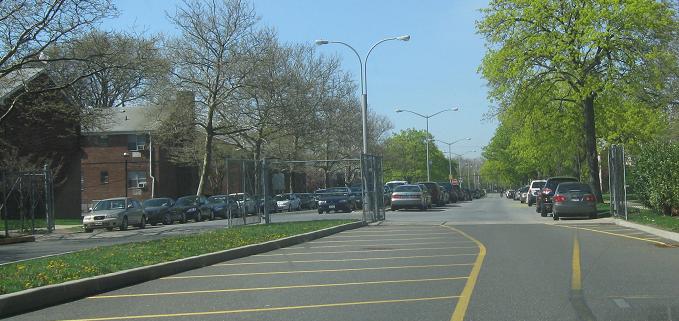 West of Little Neck Parkway, a trace of the Long Island Motor Parkway continues when 74th Ave. stops. It's just a large parking lot now.