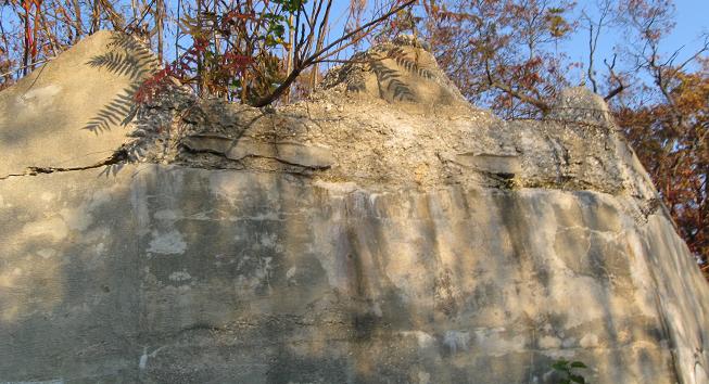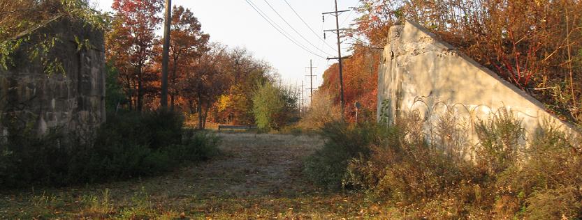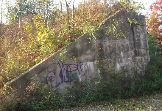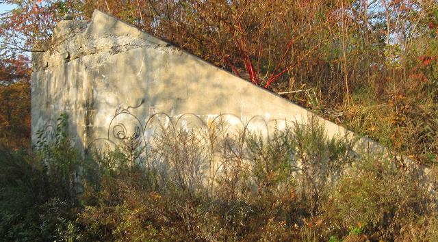 On the west side of the clearing near Maxess Rd. is this 1910 railroad overpass, or to be precise, the abutments of the former overpass. The second and third photos are the left (southern) abutment and the last three photos are the right (northern) abutment.