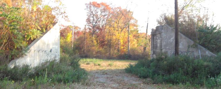 Most of the Parkway in Suffolk County is now part of CR 67 and driveable, which is the easiest way for the casual enthusiast to see the Parkway but also the least interesting. Still, there is one important piece of the Parkway accessible between the Suffolk/Nassau line and the beginning of CR 67. It starts just east of NY 110 but is not accessible from that angle. It then crosses Maxess Rd. and peters out at Duryea Rd. Park in the lot at the northeast corner of Maxess and Duryea; turn right and head to the eastern corner of the lot along Duryea. Walk across Duryea and past a gate until you come to a clearing to the right...
