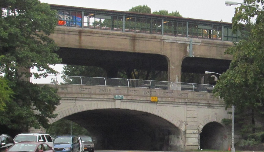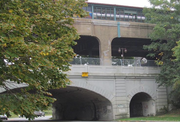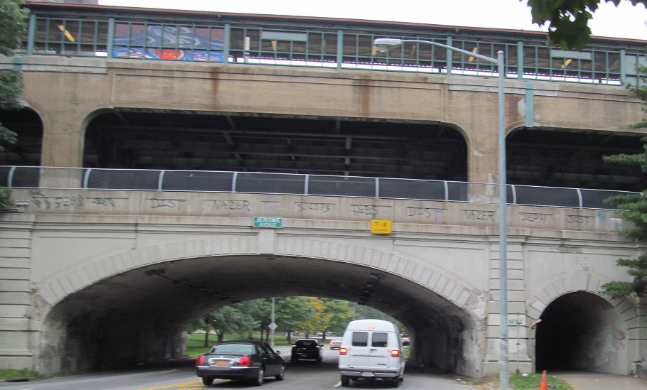 SB views of this 1910 span. That's right, the bridge predates the Parkway. It was built over the "Mosholu Parkway" back when that name referred to the way that the park followed, not a road therein.