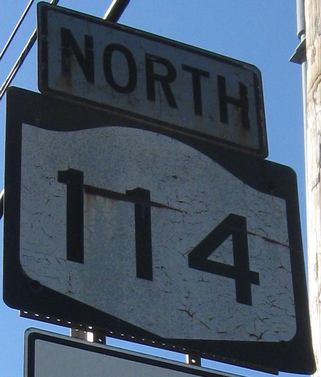 Starting with the photo atop the page, southbound from the North Ferry to the only signed county route you see from NY 114. Plenty more are on the island, but they're signed like island roads. This is the only patched shield I've seen where the number was applied after the patch - usually it's already on the patch first.