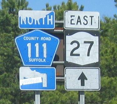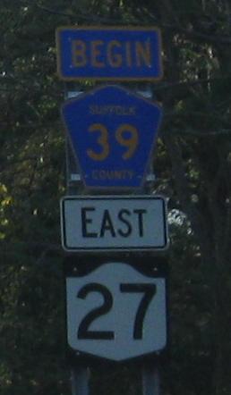 For a short distance, NY 27 is county maintained as it transitions from Sunrise Highway back to Montauk Highway. This was intended to be a temporary affair, but it's unlikely the freeway will push any farther through the Hamptons. CR 39 is impeccably signed with NY 27 while the two are together.