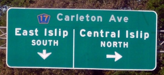 Now the Sunrise Highway has become a freeway, although it's never the Sunrise Expressway. The last two photos are on the EB service road (hence the sharp right on a freeway), and the third photo is courtesy Mike Byrnes. Note the use of North and South instead of the proper NORTH and SOUTH.