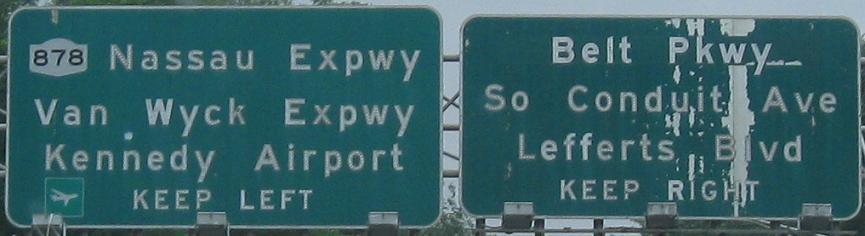 You do get some old signs if you head toward I-678, most likely because traffic passing under these signs is also coming (separately) from NY 878 and Belt Pkwy. WB.