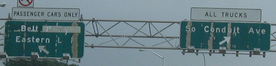 An EB Brooklyn photo of my own taken at E. 91st St. There are a few exit numbers off of Linden Blvd., specifically on one stretch a little west of Conduit Blvd., but there are no interchanges, just ramps to the outer ("frontage") roads.