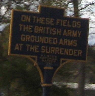 A first-generation historical sign on Saratoga CR 338, former NY 338, heading east from NY 29 toward the Saratoga Battle Monument and Schuylerville.