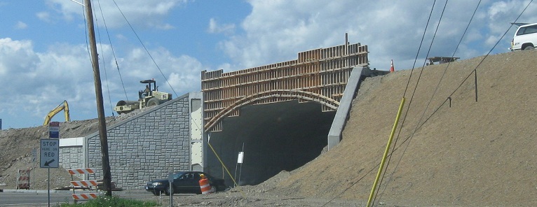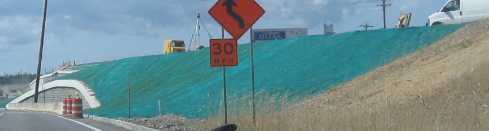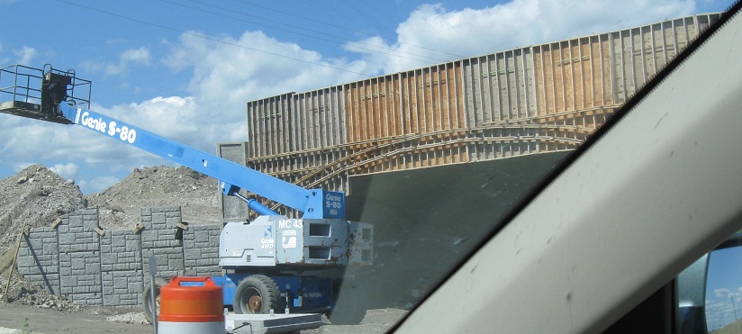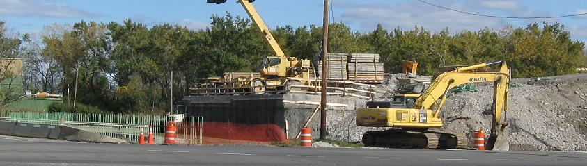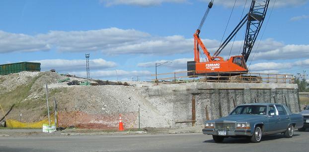Another torn-up overpass, this either where Fuhrmann Blvd. goes back to being a pair of one-way frontage roads or at a double U-turn north of there.