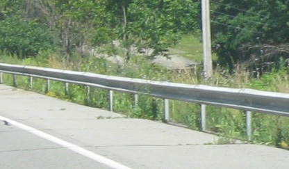 A milemarker left on the Skyway where no one can see it, next to shiny new guiderail that won't be tested for another year or two.
