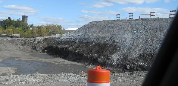 Now looking north from there, up to the end of the Ohio St. contract. I guess the next part of the Skyway will be reconstructed later - I assume the entire roadway is due at some point. The reinforcement is waiting up there to be arranged in new concrete just like at the southern abutment.