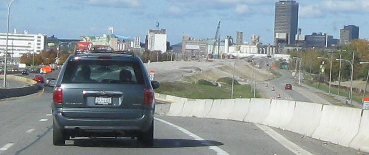 Very strange signage at Tifft St. leading into the beginning of construction. This part of the Skyway is getting reconstructed while a new Outer Harbor Parkway is constructed next to it. The waterfront will be made more accessible and more beautiful, but roads enthusiasts for now still get to celebrate that NY 5 will be replaced on structures instead of brought down to grade. It's a fight back against the trend of idealistically removing urban freeways.