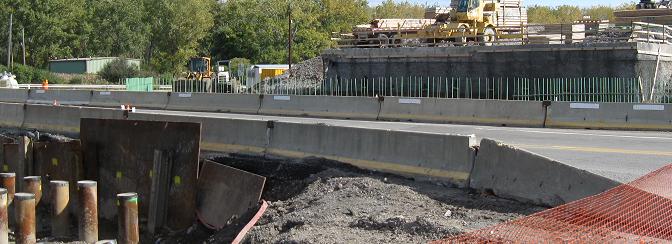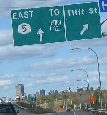 I'm not quite sure what the extent of reconstruction is, because some parts of the road are entirely torn up, other parts are partly still there, and all of the overpasses are missing. While that goes on, NY 5 uses the former SB frontage road (Fuhrmann Blvd.), which is where the Outer Harbor Parkway will be constructed. In widening the road for that purpose, even the two-way part to the north of Ohio St., the bike path was temporarily obliterated.