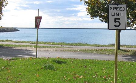 The Buffalo Road Meet stopped across from Ohio St. in this parking lot. It was realigned to meet Fuhrmann Blvd. across from Ohio St. as either temporarily or permanently part of the Skyway reconstruction. The contractor did it the cheapest way possible, though, making a straight cut across the pavement and not only leaving the stripe that takes drivers into the grass, but the speed limit for drivers who find themselves on that grass.