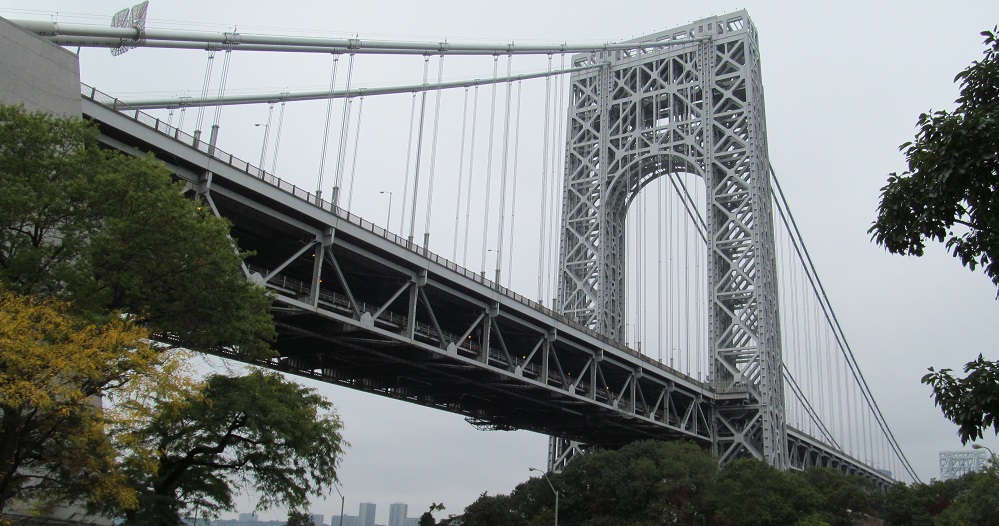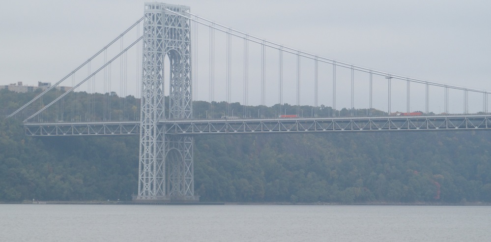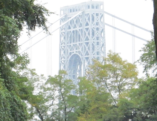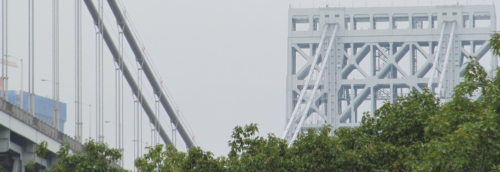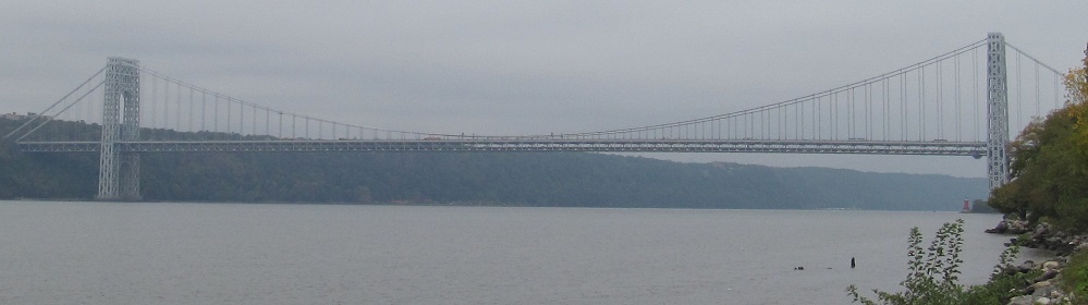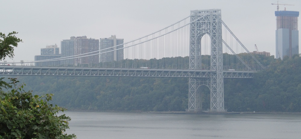 NB up to The Bridge, with the Little Red Lighthouse living beneath its eastern pier.