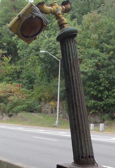 The NB-only Fort Tryon entrance crosses under the old road to The Cloisters. The old traffic lamp is across from there on the west side of NY 9A NB, which I think once signaled the ramp to slow down and use caution to merge.