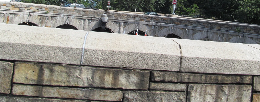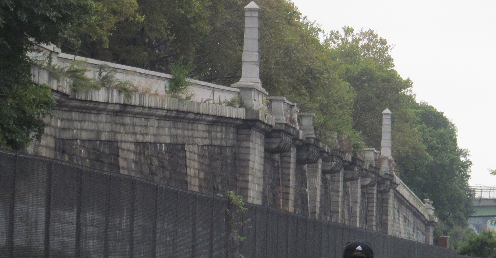 The arches hold up Riverside Park at 105th St. The solid wall holds up Riverside Drive north of 125th St.