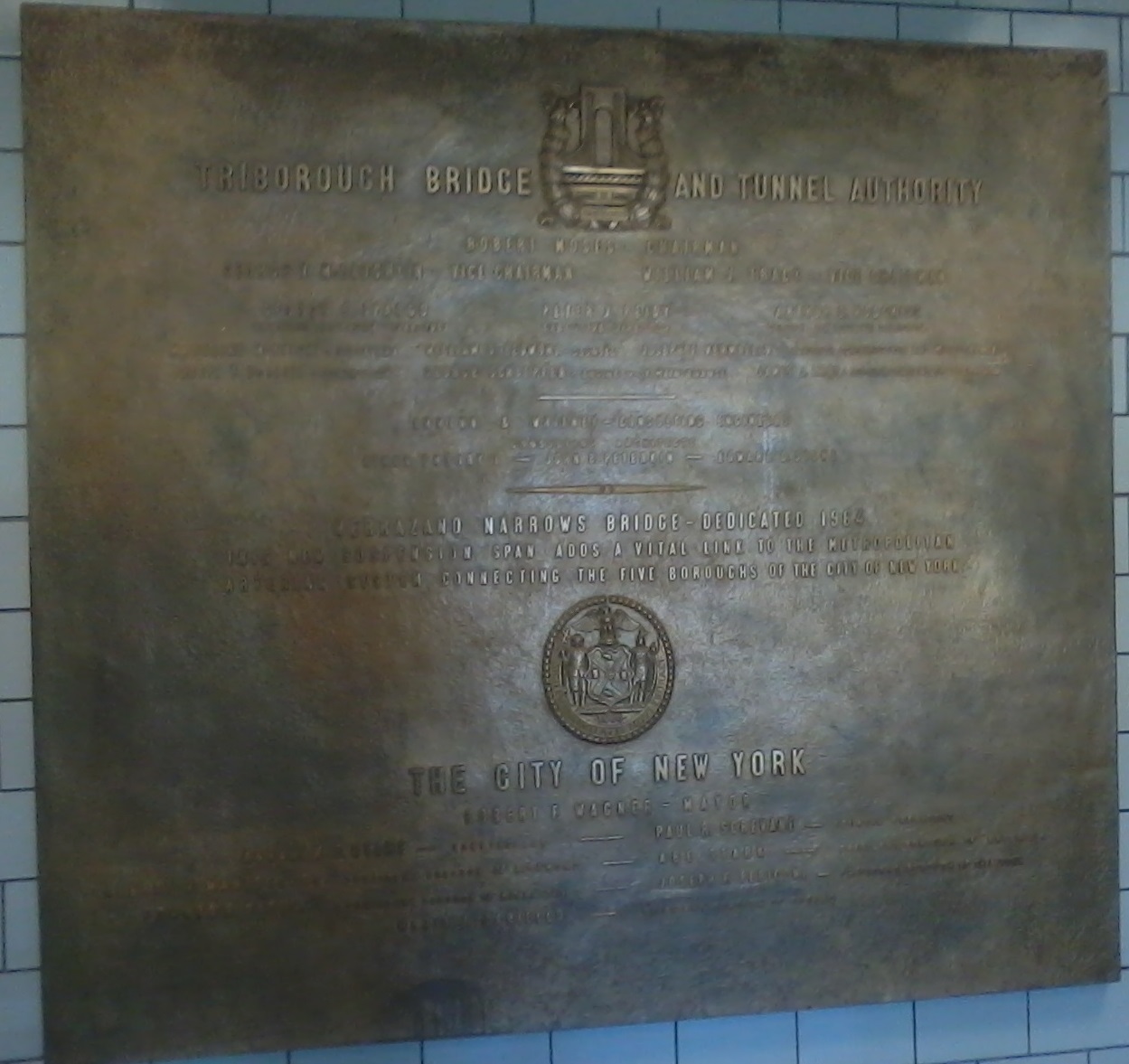 Naturally, the Triborough Bridge and Tunnel Authority has their headquarters inside the Triborough Bridge. Wait, inside? Sure enough, the Randall's Island bridge approach wasn't built on fill, it was built on building, and this plaque is hidden within. Click for a more legible closeup.