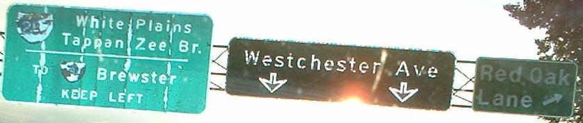 Westchester Ave. is so wedded to being a frontage road pair that it even adopts I-287's exit numbers. This WB sign is in progression from the Cross-Westchester exit ramp merge to the Parkway cloverleaf.