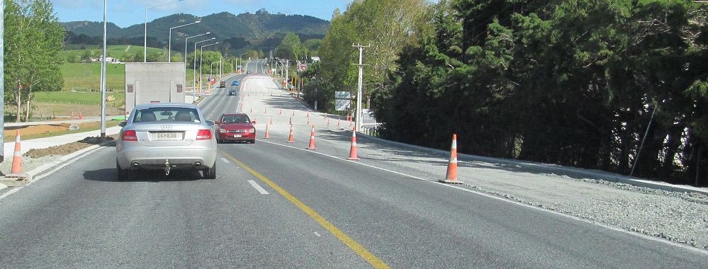 Minor widening in the towns on either side of the Dome Valley, Warkworth (2 photos) and Wellsford.