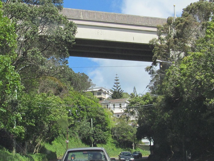 Another, even more interesting underpass, as Glenmore St. tunnels under Raroa Rd. and some associated forest, heading west.