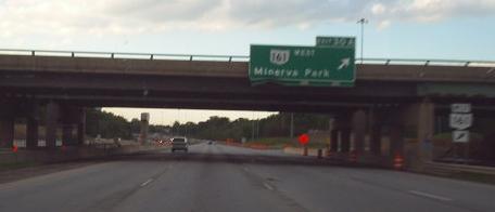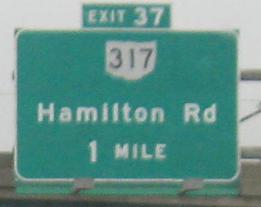 Signs along the Exit 35 ramp as it curves away. No exit numbers, you know the drill.