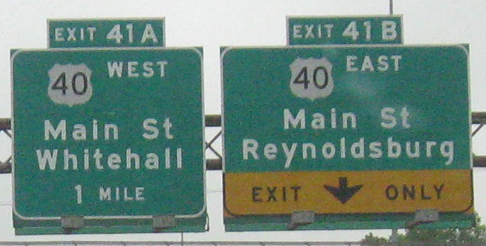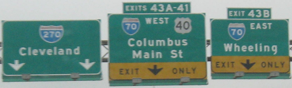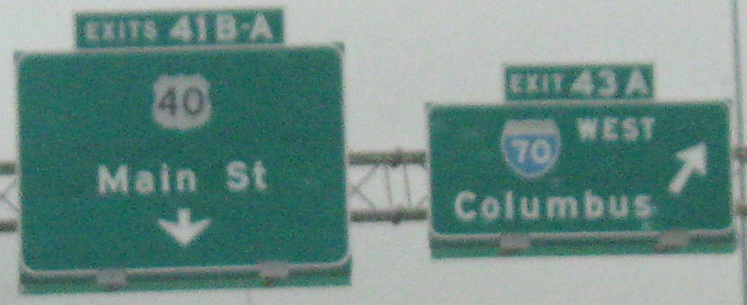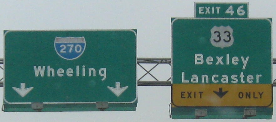 Ohio doesn't sign A-B exits on C-D roads (yes, attempted roads pun), leading to a sudden lack of exit tab within sight of the freeway mainline. For further confusion, the exit gores both show the exit number. "Take Exit 46 to US 33" would not be the best directions to give.
