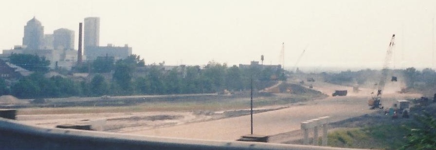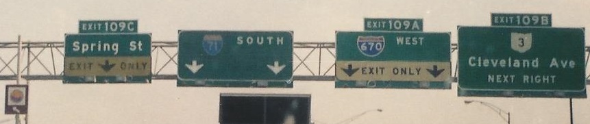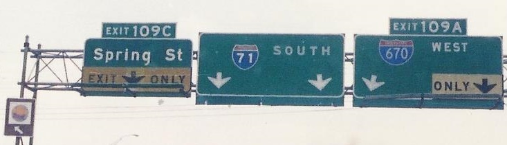 Bonus John Krakoff content from 1992, when Indianapolis took priority over Dayton and the northern leg of the complex I-670/I-71 interchange was being built. The old Exits 109A and 109C are both gone in the new configuration.