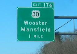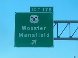 Ending on the Exit 176 ramp, almost all courtesy Doug Kerr. The last photo is courtesy Bill Donovan, outside Mansfield, and the second photo is mine. Movements between the east and the north are accomplished via Crider Rd., Richland CR 92, and Koogle Rd., which is why east is to the right for cars heading south. All of the Mansfield bypass on US 30 is a freeway except at I-71, where the ramps to and from the south intersect 30 at grade. There is just one more exit to the east (the aforementioned Koogle Rd.), but it makes sense to create more grade separation here at Exit 176.
