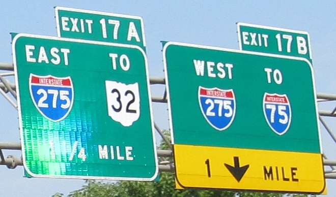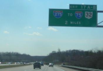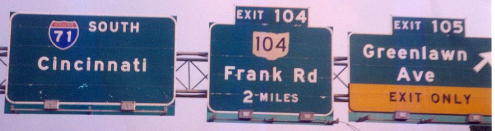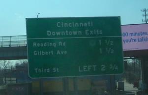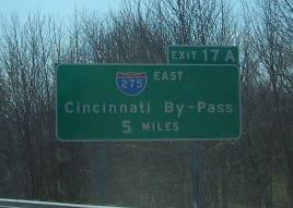 Courtesy Doug Kerr except for the second photo and the last two photos, past the Miami River (named for the same tribe as the famous Miami University Not In Florida) and distance signs that like to tell you the next exit instead of the next town.