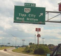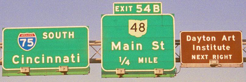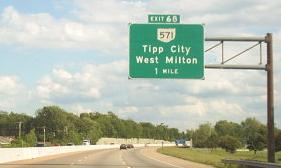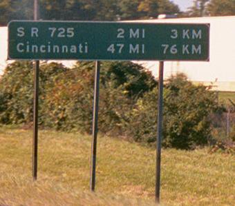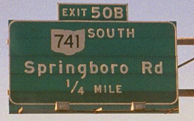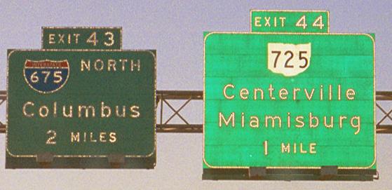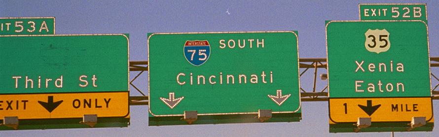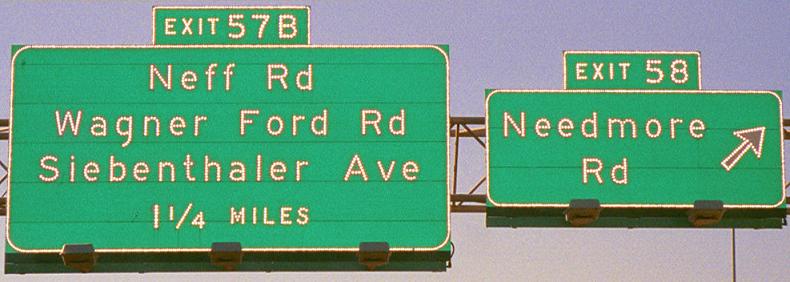 SB through the Dayton area, courtesy John Krakoff except the second , third, and sixth (smaller) photos are courtesy Doug Kerr. Do you Needmore Rd.? I know I can't get enough! (Pause for wry chuckles.) The penultimate photo is one of the only times you'll see metric away from the border. It should read "km" though, not "KM."