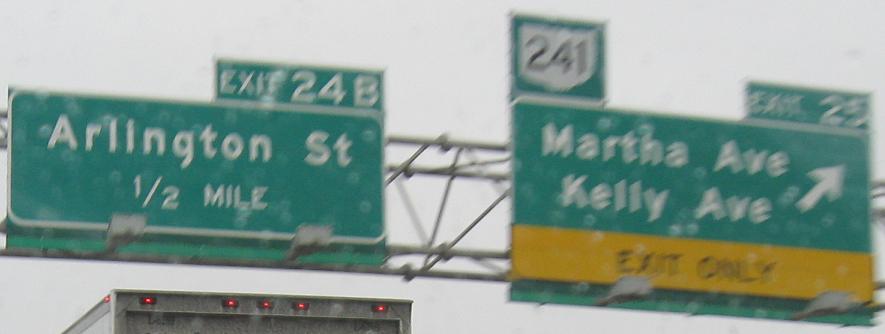 EB once more, to the end of the Exit 25B ramp, with a sneak peak at the Exit 26 advance sign.