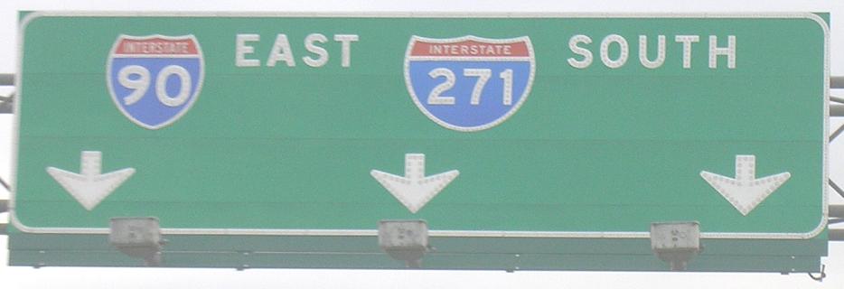 On the link from OH 2 to I-271, with misleading signage - a TO near the I-271 shields would go a long way. The first photo is courtesy John Krakoff, and click on the second photo for a closeup of the pull-through sign also from John. The other photos are courtesy Doug Kerr.
