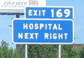 The rest of the WB run and on down the Exit 169 ramp, all courtesy Doug Kerr except the last photo and the Exit 169 hospital sign.