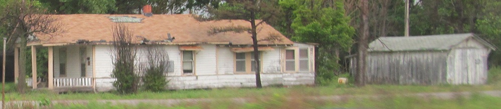 I turned off US 69 NB at the first photo onto some side street - most of the signs are gone, possibly taken as souvenirs or else blown away by the tornado. Some buildings have already been demolished, leaving empty lots, while the water tower stands forlornly over the emptiness.