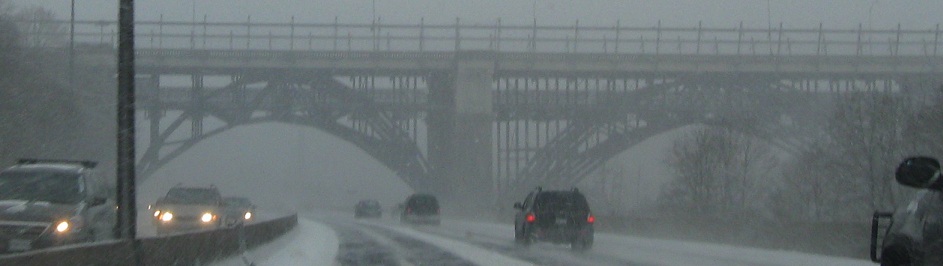 A much smaller overpass (Gerrard St.) and up to the end of the Parkway. Gardiner Expwy. and Don Valley Pkwy. are both city-built and maintained freeways. Gardiner, built as a Lake Shore Blvd. bypass (the original route of Highway 2), once extended a little farther east from here, but the short extension was torn down when the rest of the Expressway was rebuilt. It had been planned for a full extension out to Highway 401, but I don't believe the freeway was ever a stub, just a bypass that came back down to Lake Shore Blvd. when it was no longer needed east of downtown.