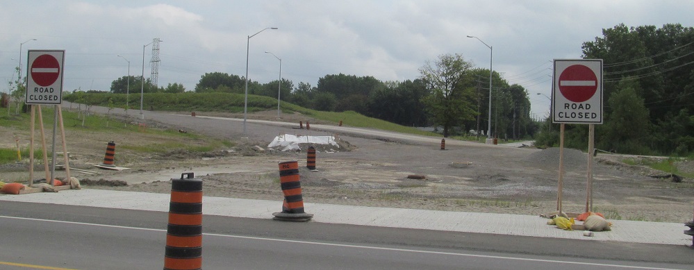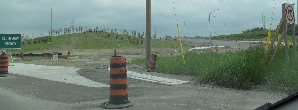 Across from the future 401 EB ramps, Broadway St. EB is cut off as Ojibway Pkwy. is reconstructed.