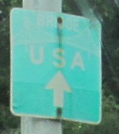 Heading back north toward the beginning of the E.C. Row, well, now, this is a giveaway. At least Highway 401 East will soon be accessible (2015; I was there in 2014) but it looks really accessible right now. Then Ojibway Pkwy. turns left, E.C. Row begins, and that is definitely a U.S.A./EEUU under there to the west. And that one's interesting, because the bridge still isn't close to being completed as of 2021. In fairness, it was on track for 2016 at the time the signs were installed.