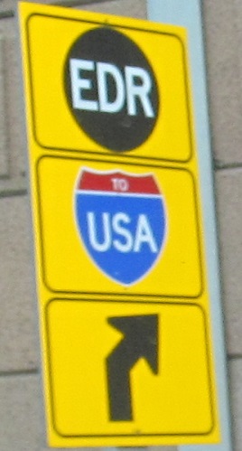I love the symbolism of the Interstate shield for USA. The WB Emergency Detour Route is onto Highway 3, so it can't be a detour for the USA Bridge (Ambassador Bridge is privately owned, which is my guess why it's never named on signs). E.C. Row Expwy. ends not long after at Ojibway Pkwy., so I don't know where an EDR would even go from here.