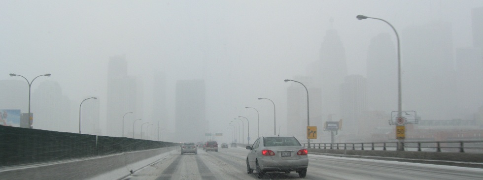The Toronto skyline is beautiful when it's not blockaded by snow and fog. There's a CN Tower somewhere in there right next to the highway, but I got nary a glimpse as I trudged by at 90 km/h (just keeping up with the other Ontarians in the snow).