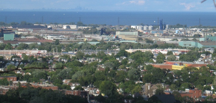 Views of western and eastern Hamilton from Mountain Brow Blvd. right next to the top of Kenilworth Access. Hamilton's industrial roots are showing, but at least they're not dying. (Get it? Roots showing? Dy(e)ing? Sorry.)