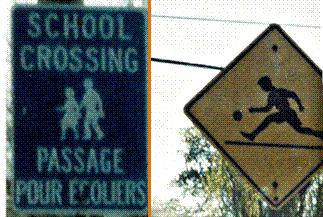 Old photos of historic Owen Sound street signs, courtesy Averill Hecht. Of these, only the white on blue school sign is ever seen now, and it's no longer a provincial standard.
