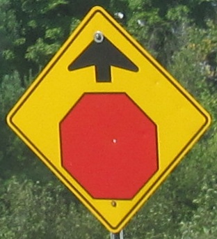 What Renfrew County believes to be a standard stop-ahead sign, Pinnacle Rd. SB/WB at Garden of Eden Rd. If the stop sign itself were similarly oversized, they wouldn't need the advance warning.