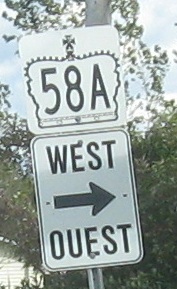 The two shields atop the page lead from Highway 140 to Highway 58A via Reaker Rd. The first is the only crown variant shield I saw on the highway. Based on the Highway 58A ENDS sign in the EB direction, I now have to doubt whether 58A makes it all the way up to 140 or ends right at RR 525, but I still favor the former interpretation so that the connecting links would have a reason to be province-maintained.