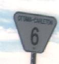 The interpretation of the County/Regional Road shield adopted by the Ottawa-Carleton Region, which ceased to exist in 2001 when the City of Ottawa went and merged with the entire original Carleton County. Every county or region seems to look at the trapezoid differently. Most Ottawa-Carleton RR's were unsigned in the city itself. I don't know where Doug Kerr took the first photo, but I took the second one just off of Exit 46 on Highway 417, on Boundary Road. (It is in fact the eastern boundary of the region, and also the approximate French-speaking/English-speaking boundary.) I'm told there are still city routes, but I would doubt new signs would still show Carleton.