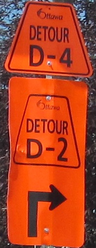Different detours signed differently, just to keep you on your toes, Booth St. NB at Somerset St.